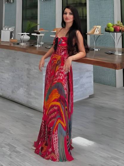 Unique Print A-Line Sling Maxi Dress